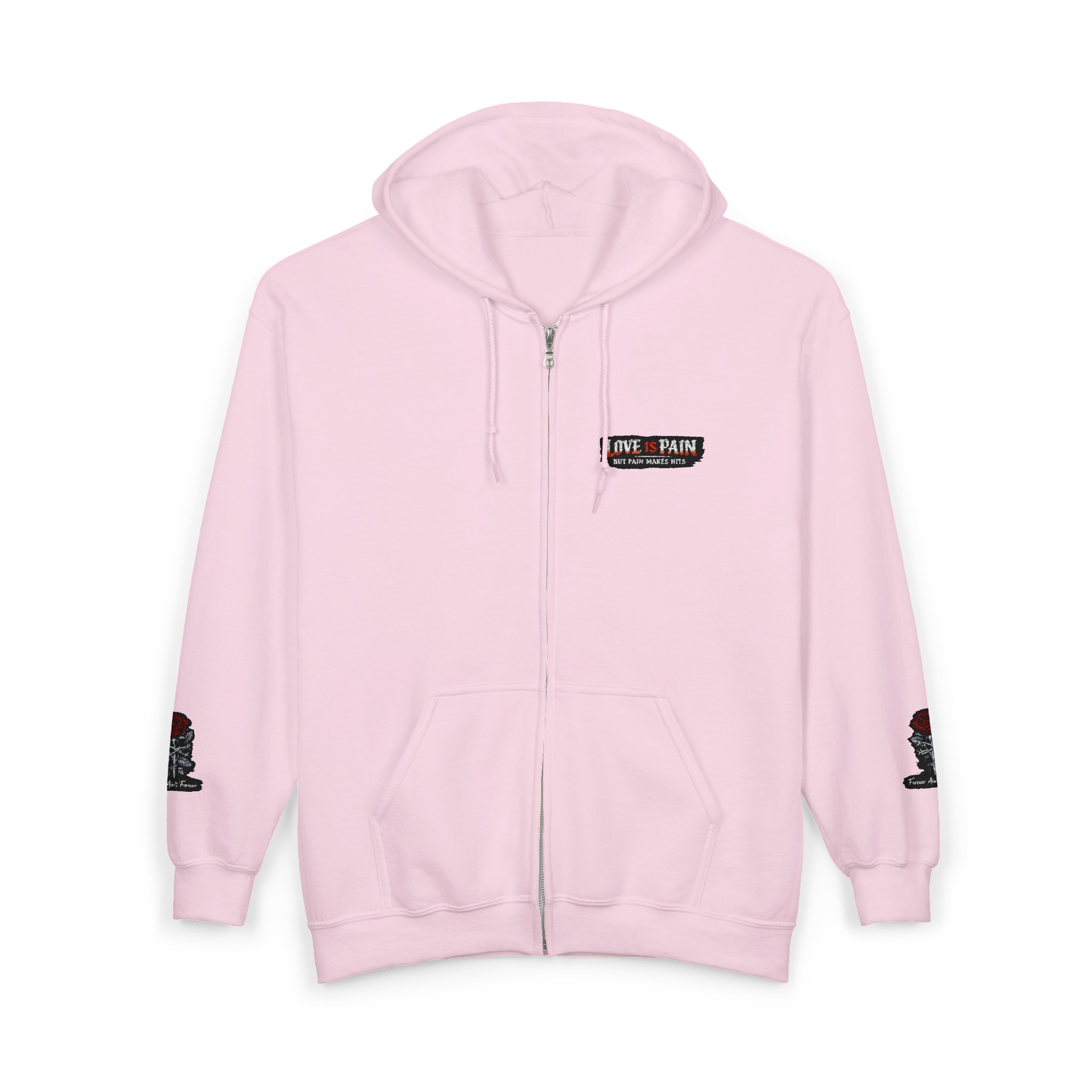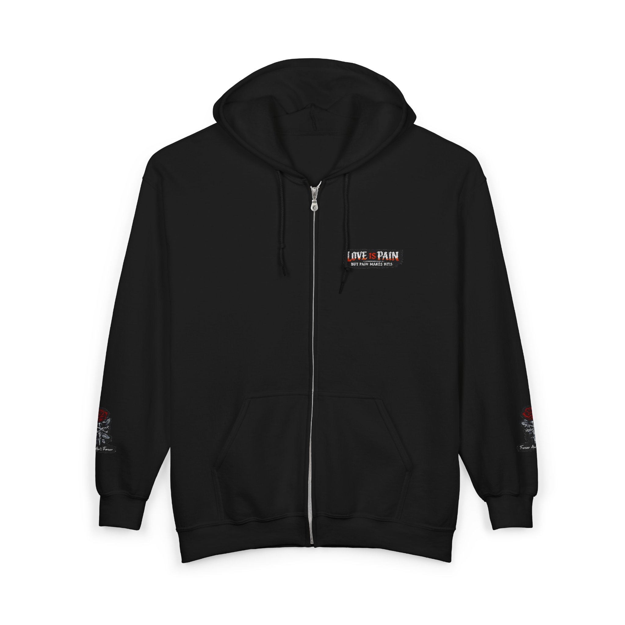 Be the first to review “Full-Zip Hoodie with ‘Love + Pain’ Vintage Patch — Unisex Casual Zip-Up”