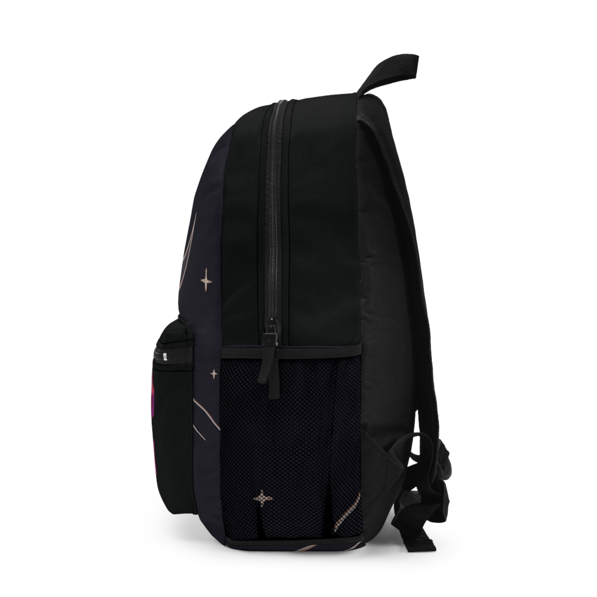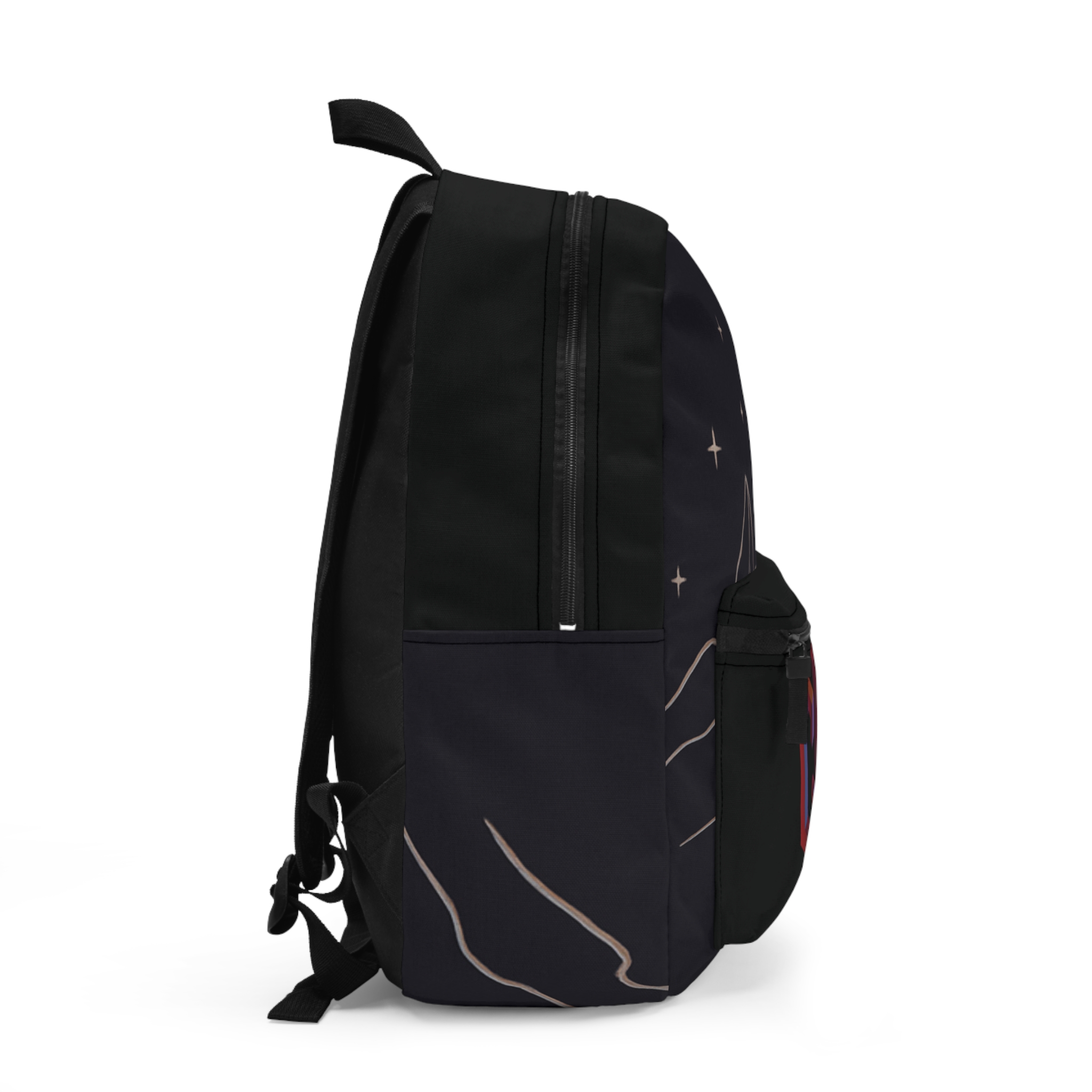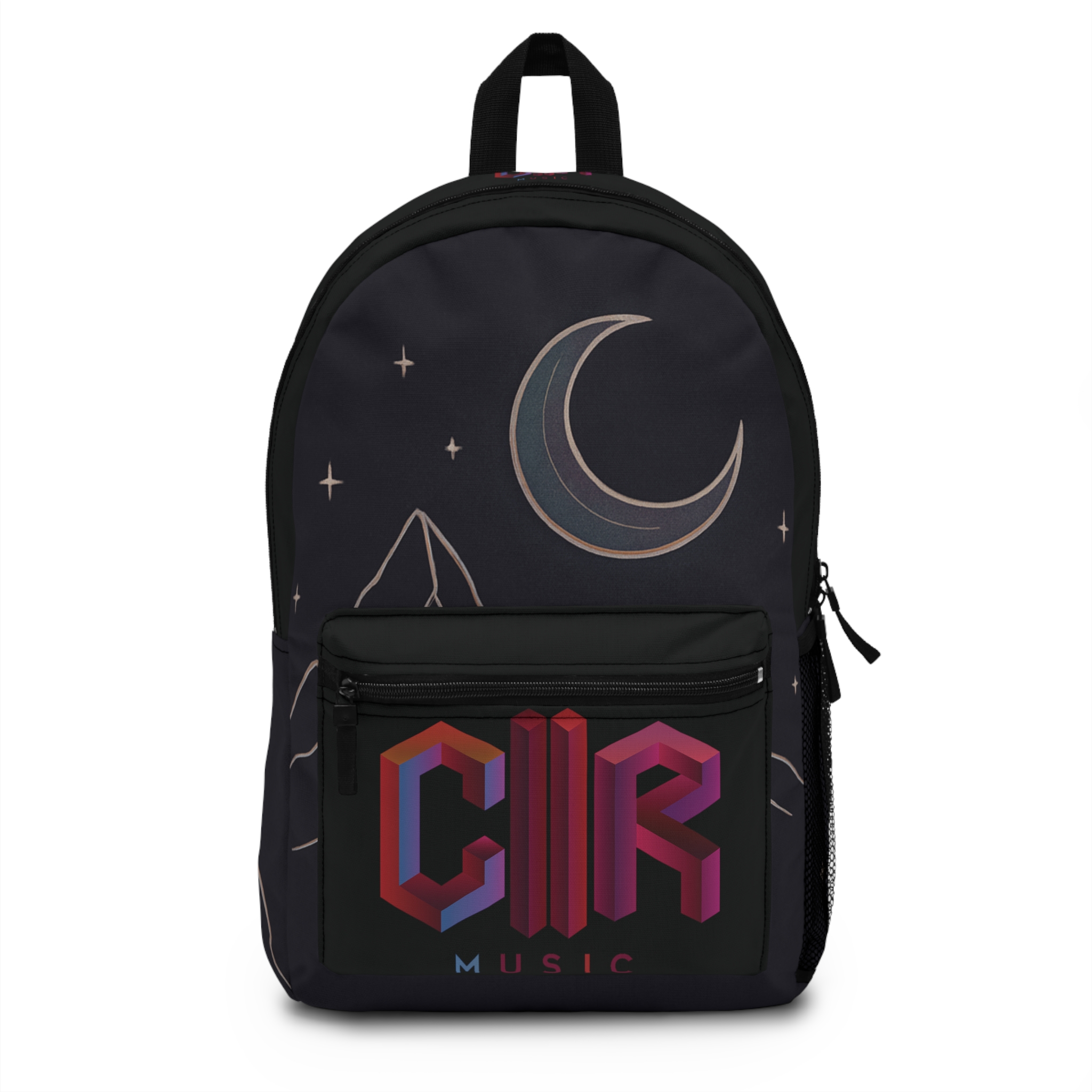 Nightfall meets city rhythm. This backpack carries late-night drives, rooftop rehearsals, and the quiet moments between sets. A deep, star-speckled field frames a crescent moon and minimalist mountain lines, while a bold, geometric “MUSIC” emblem anchors the front pocket — part streetwise, part dreamer. Padded back and adjustable straps make it easy to sling on for long commutes or festival days. Organize a laptop, water bottle, cables, and sheet music across thoughtful compartments. It’s the kind of bag that feels familiar after one night out under the sky and keeps your gear ready for the next show.