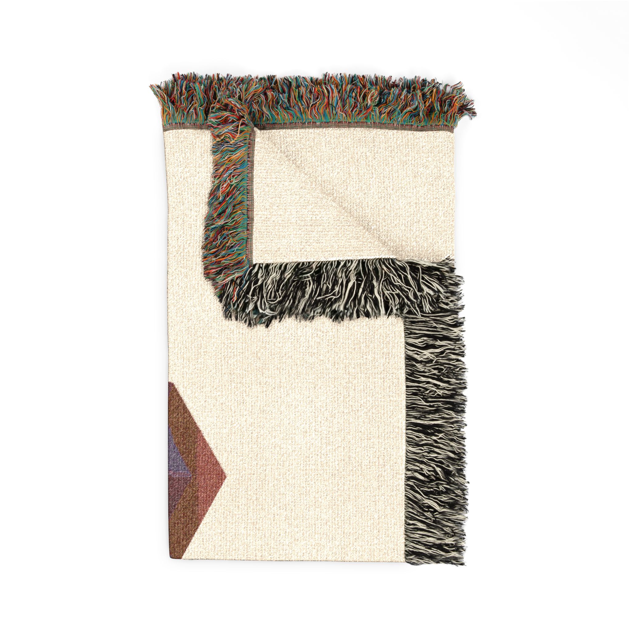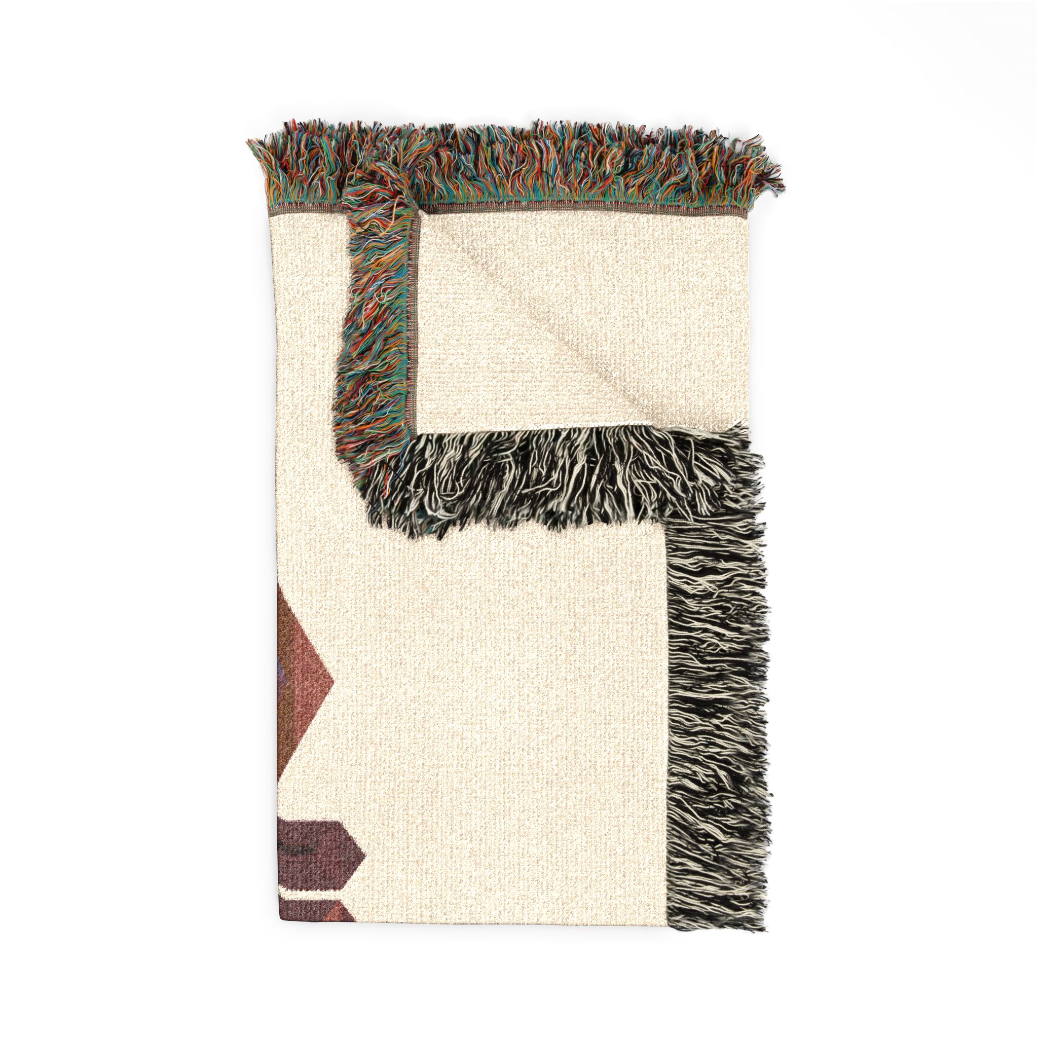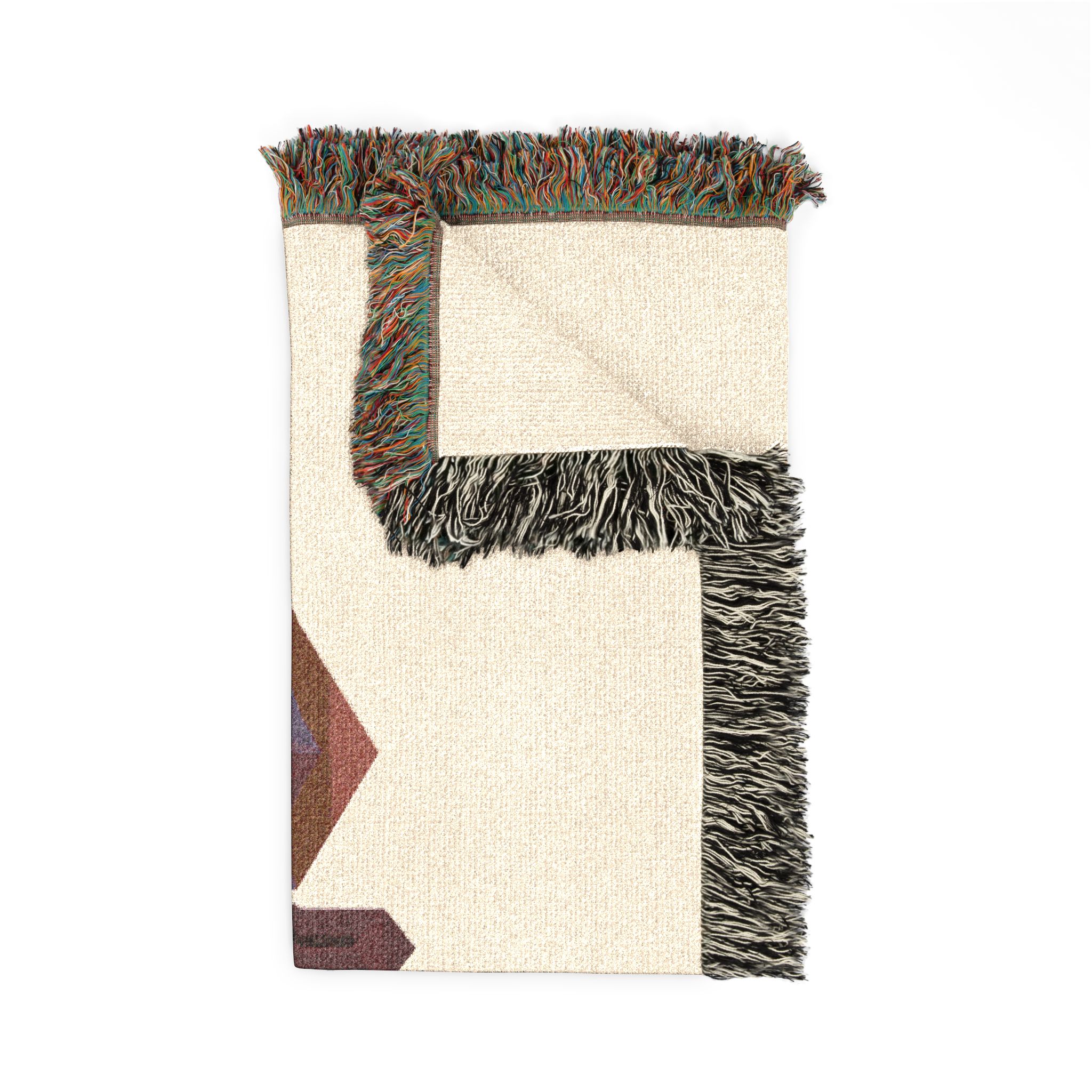 This woven blanket brings bold graphic energy into cozy moments. Woven threads form a retro geometric logo that reads as mirrored, dimensional lettering, set against either a warm cream or deep charcoal ground. Colorful fringed edges add a handcrafted touch and frame the design like a finished tapestry. The blanket drapes naturally over couches, shoulders, or gear, offering visual impact without sacrificing the soft, breathable feel of 100% cotton. Choose the Photo variant to keep subtle shading and photographic nuance, or the Artwork variant to emphasize crisp color blocks and sharp edges. Available in three sizes to suit a throw on the sofa, a picnic spread, or a room accent. Note: mockups are illustrative and final weave texture may vary slightly.